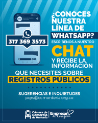 Conoce nuestras líneas donde puedes realizar cualquier tipo de trámite de la Cámara de Comercio de Montería.https://wa.link/69f7nk