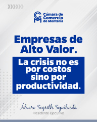 Frente a los retos que actualmente enfrentan las empresas entre costos y productividad, el Presidente Ejecutivo de la Cámara de Comercio de Montería, Dr. Álvaro Sepúlveda Salgado, plantea una reflexión estratégica sobre el verdadero camino para la sostenibilidad empresarial. En este mensaje, propone fortalecer la productividad como eje clave para la competitividad, la generación de valor y la preservación del empleo en el departamento de Córdoba.
