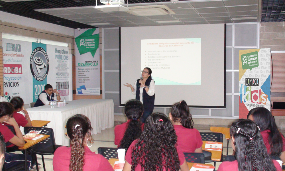 La Cámara de Comercio de Montería en su iniciativa promueve la cultura del emprendimiento entre los más jóvenes de nuestra sociedad, está ejecutando el programa CÁMARA KIDS mediante transferencias de metodologías empresariales para que actúen como facilitadores con estudiantes en la resolución de los retos propuestos por el campo laboral.